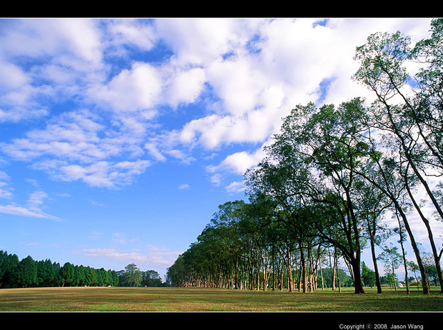 廣大的草坪與整齊的樹林所吸引,在此花了不少